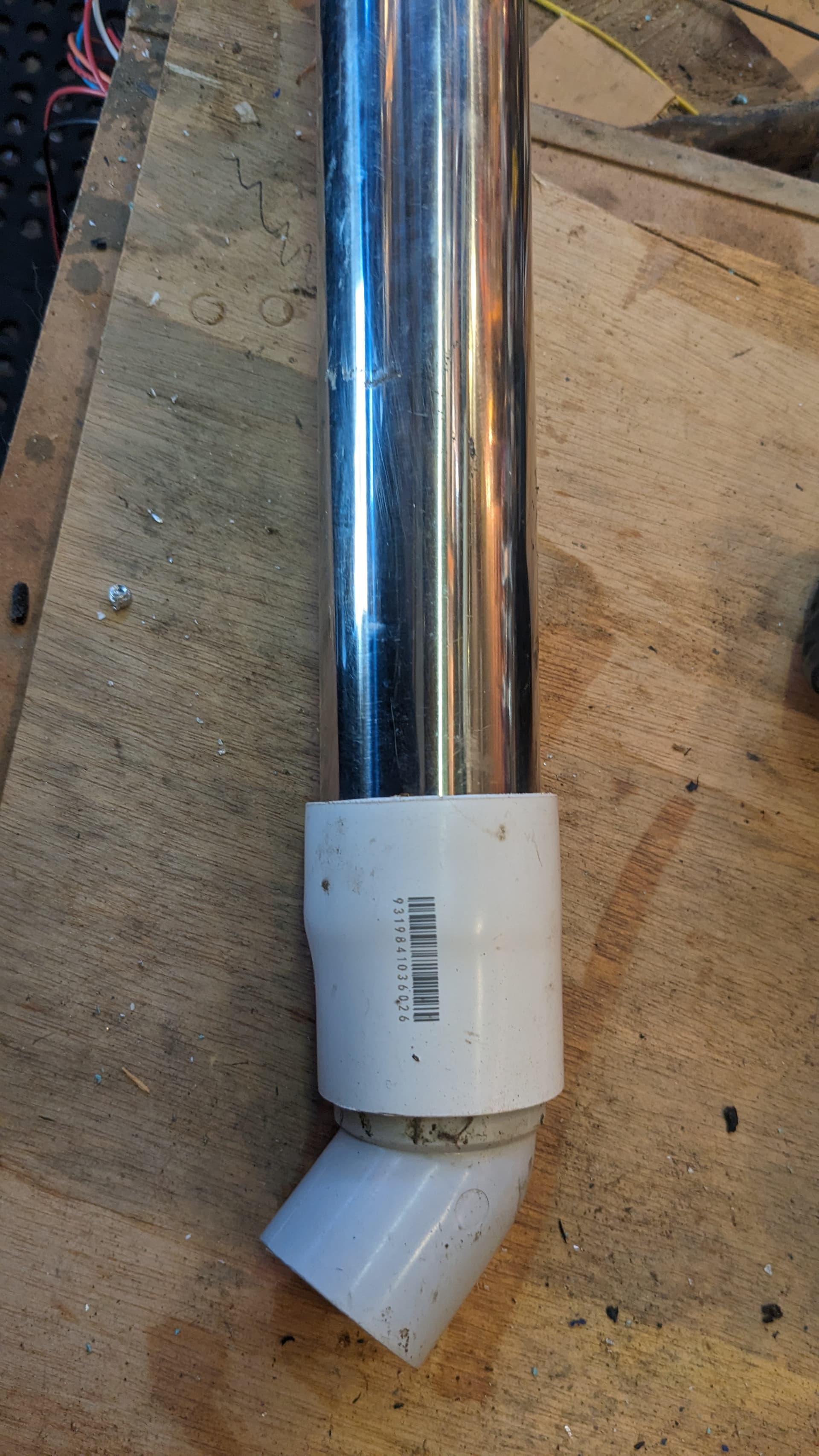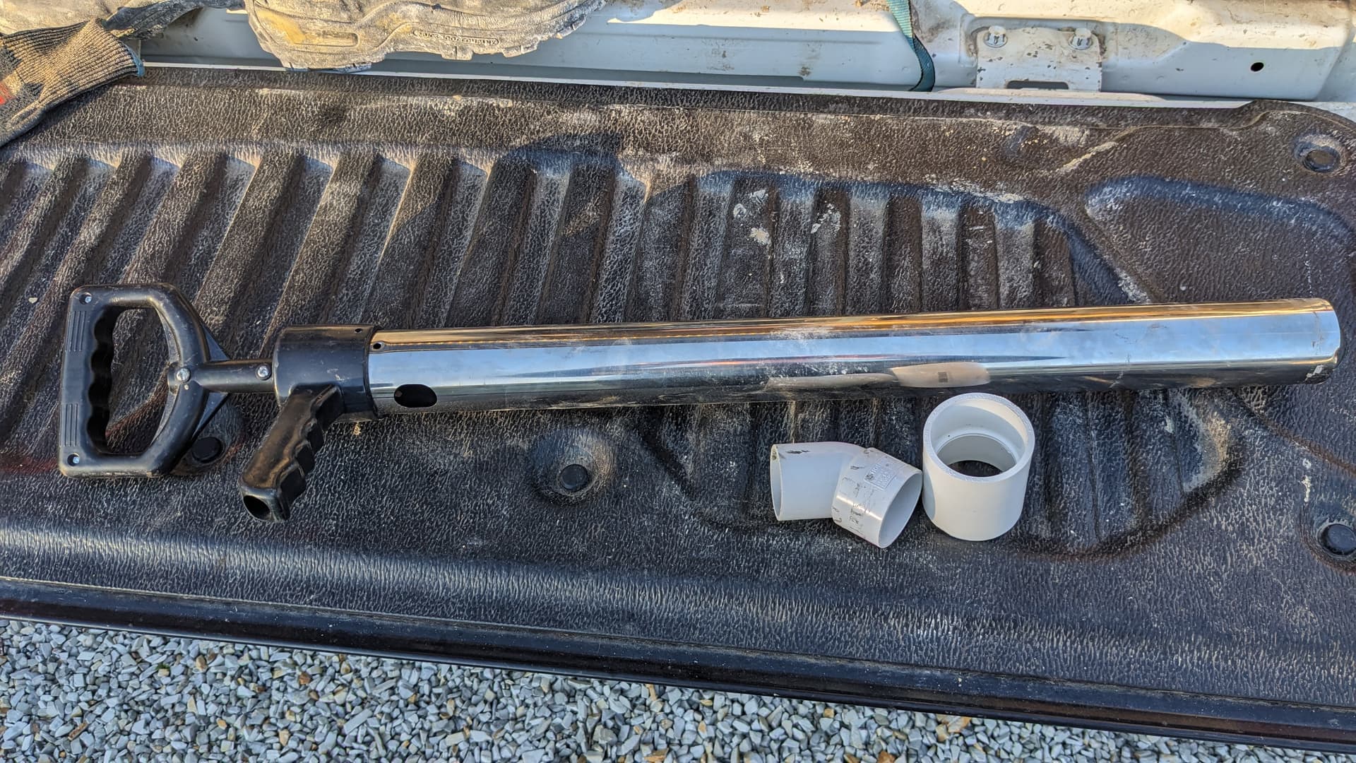 Temu have a stainless steel yabbie or bait pump for around $25 posted. Got one. The stainless is pretty thin, but the basic design is good. Washer is easily accessible and easy to copy, held in with what looks like a stainless (?) nut. Anyway, to make it practical and resistant to banging about, I added a Bunnings joiner. 40mm coupling and a 30 degree joint to make it easier to use. Heat up one end of the coupling with a heat gun and slide over the end of the pump and let it cool. It will expand a bit. Interference fit for the joint so you can pull it out and remove the inevitable rocks that get stuck